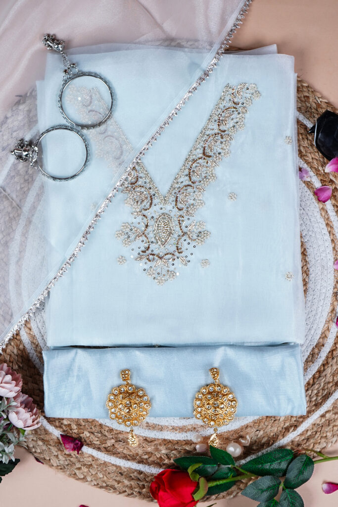 Riva Ice Blue Zari & Sequins Embellished Unstitched Suit Set