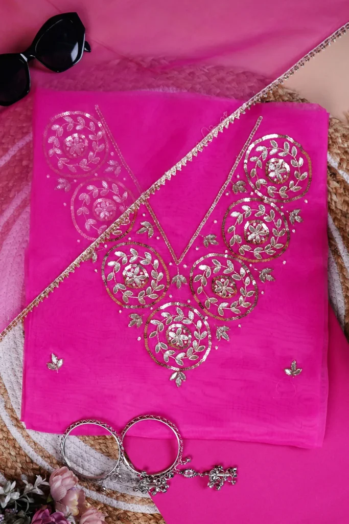 Pink Petal Hand Embroidered Unstitched Suit Set with Beads & Mirror Work Read More »