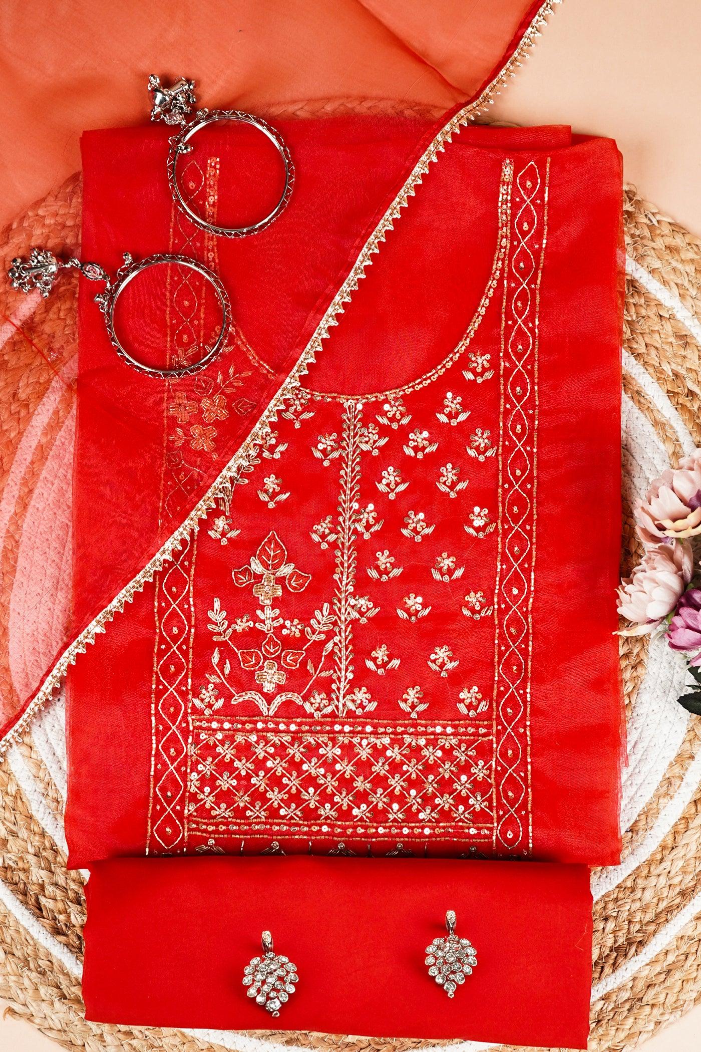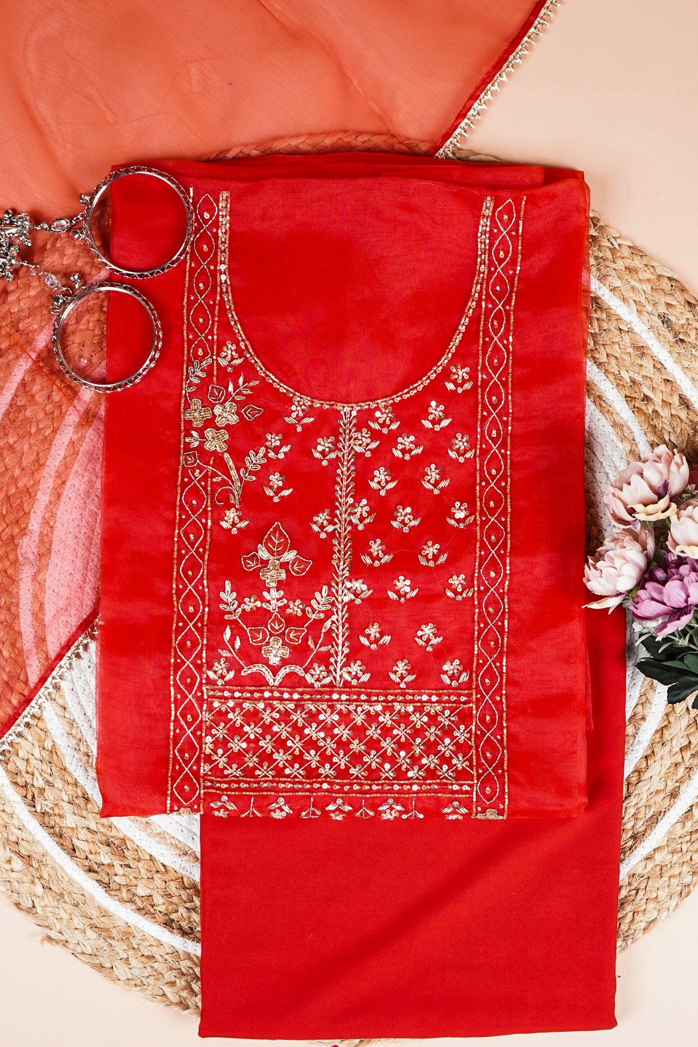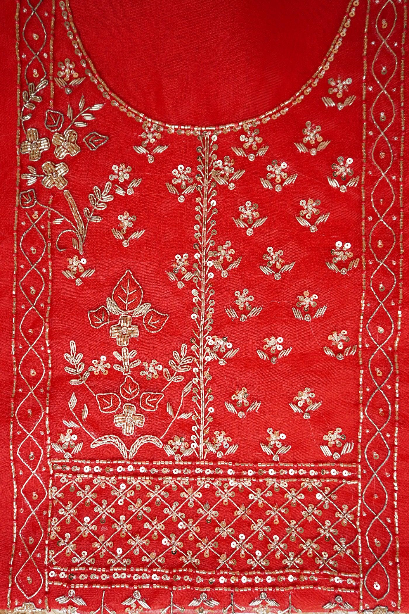 The Laal Rang Hand-Embroidered Unstitched Suit Set features meticulously crafted hand embroidery on premium fabric, offering a unique blend of traditional artistry and contemporary style. Designed for customization, this unstitched set allows you to tailor the garment to your precise measurements, ensuring a perfect fit and personalized elegance. Ideal for those who value detailed craftsmanship and versatile fashion, it provides a sophisticated base for creating timeless ethnic wear.