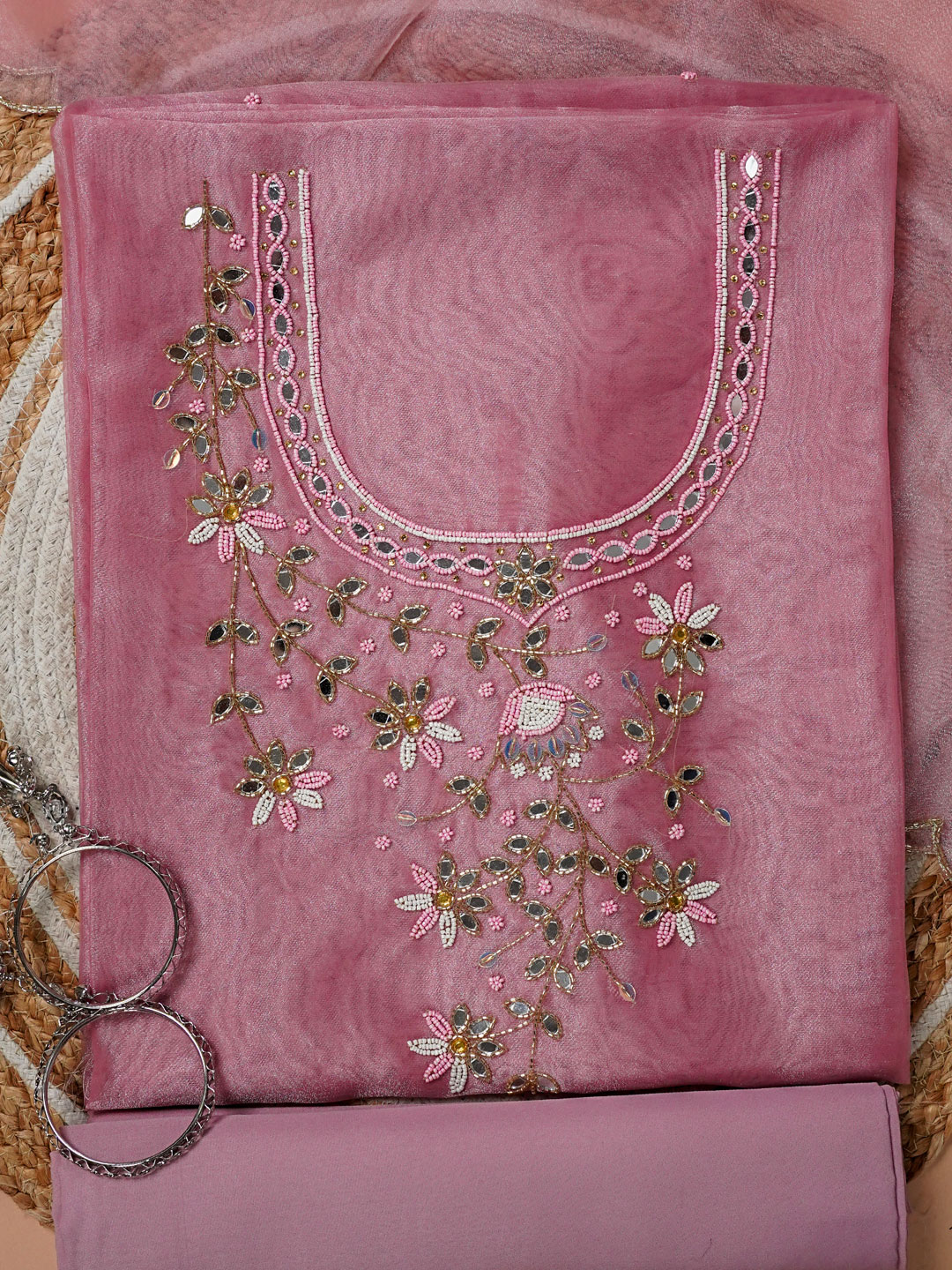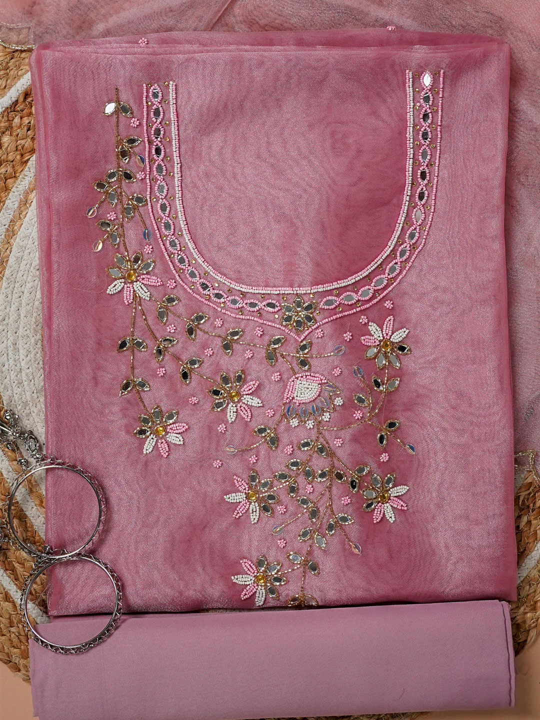 Pink Petal Hand Embroidered Unstitched Suit Set with Beads & Mirror Work