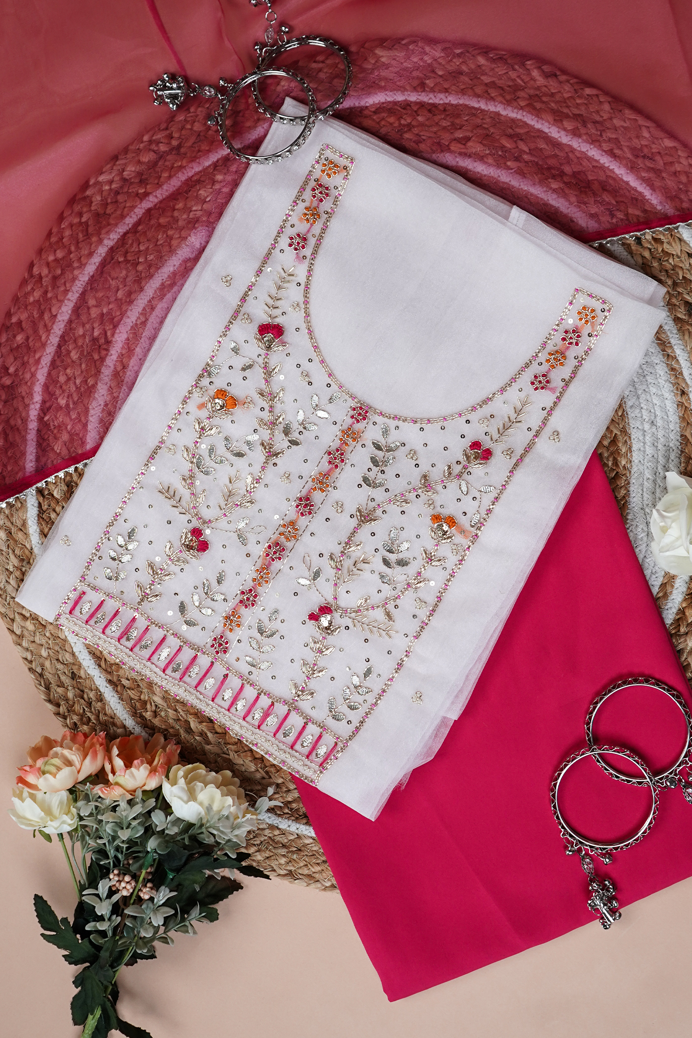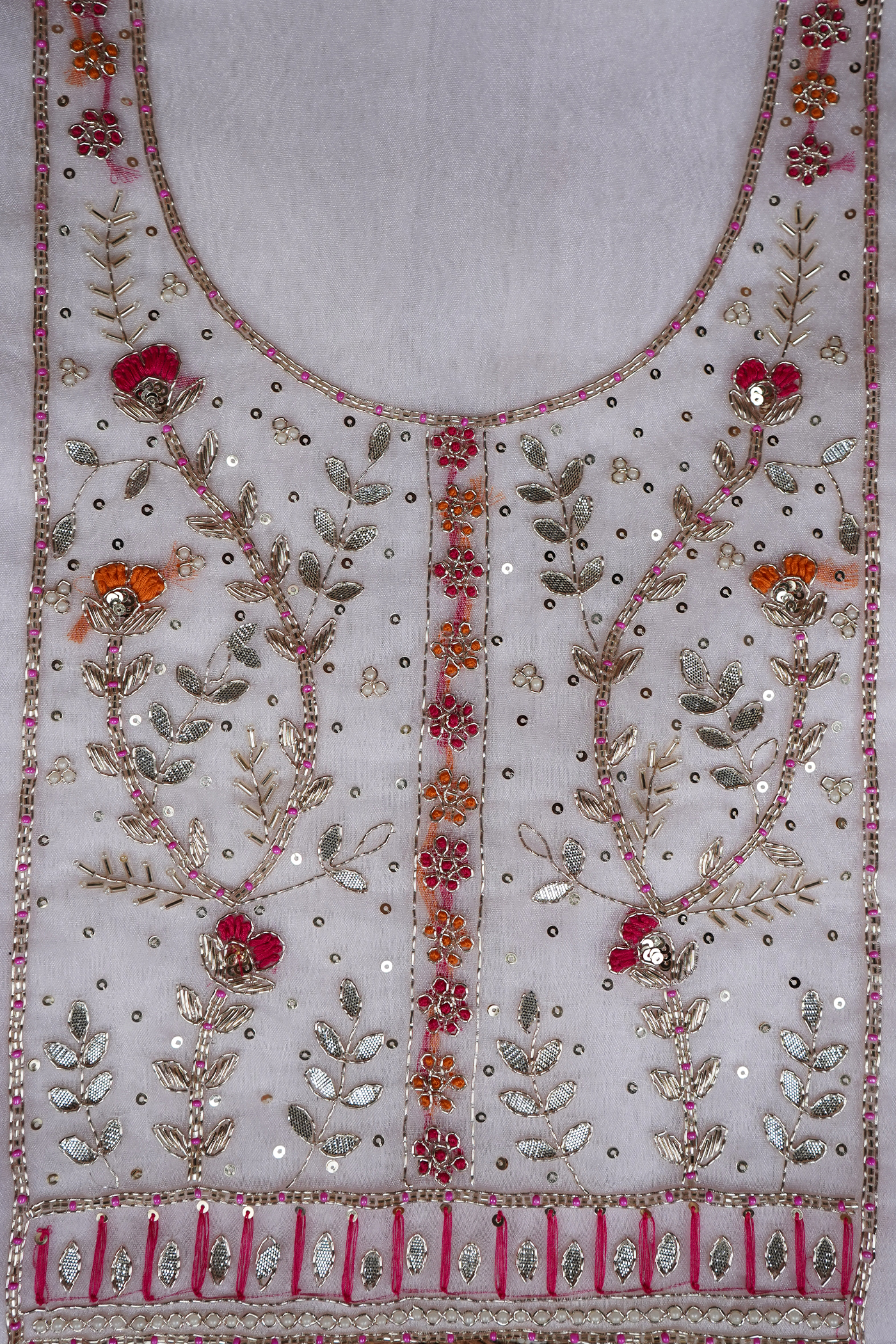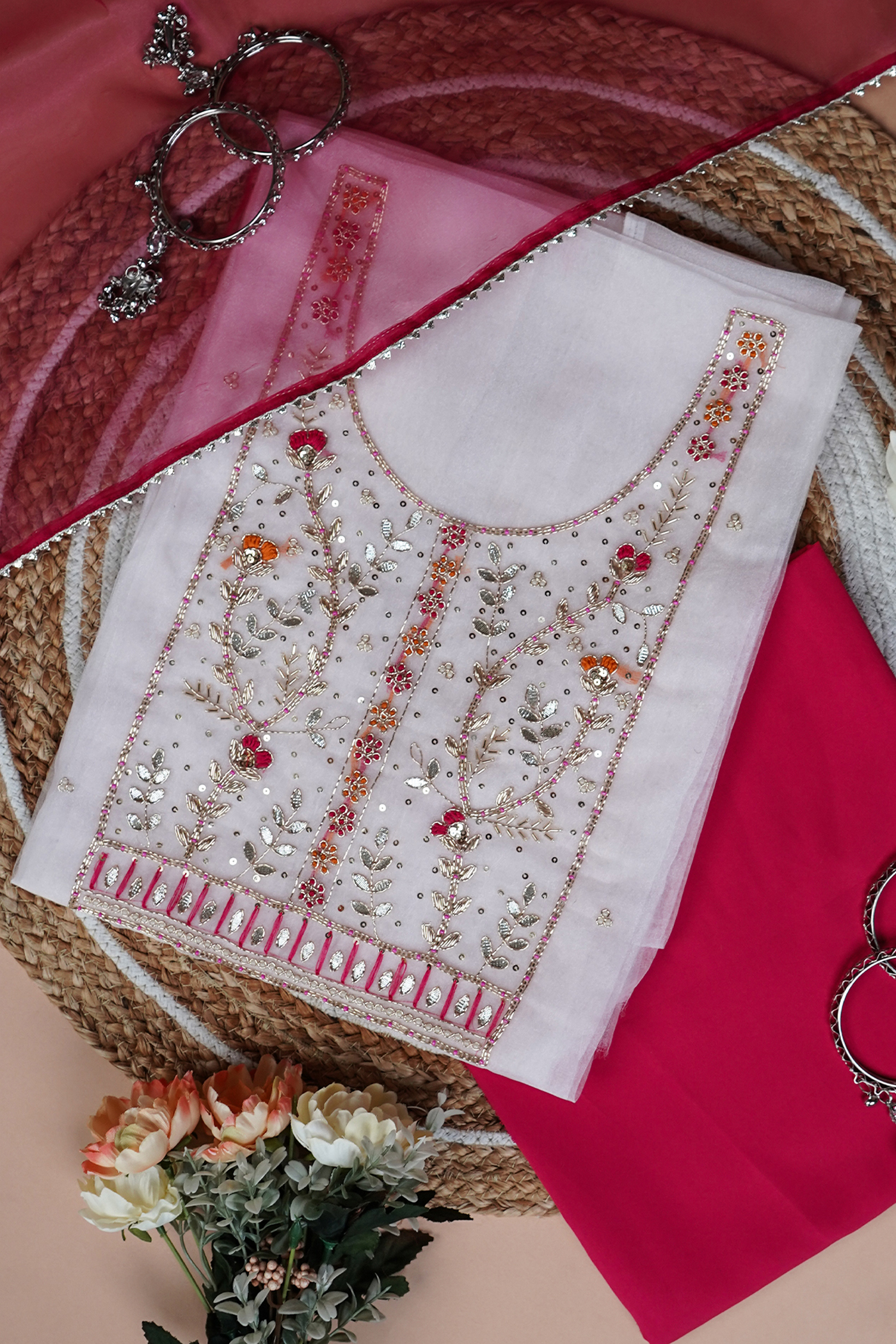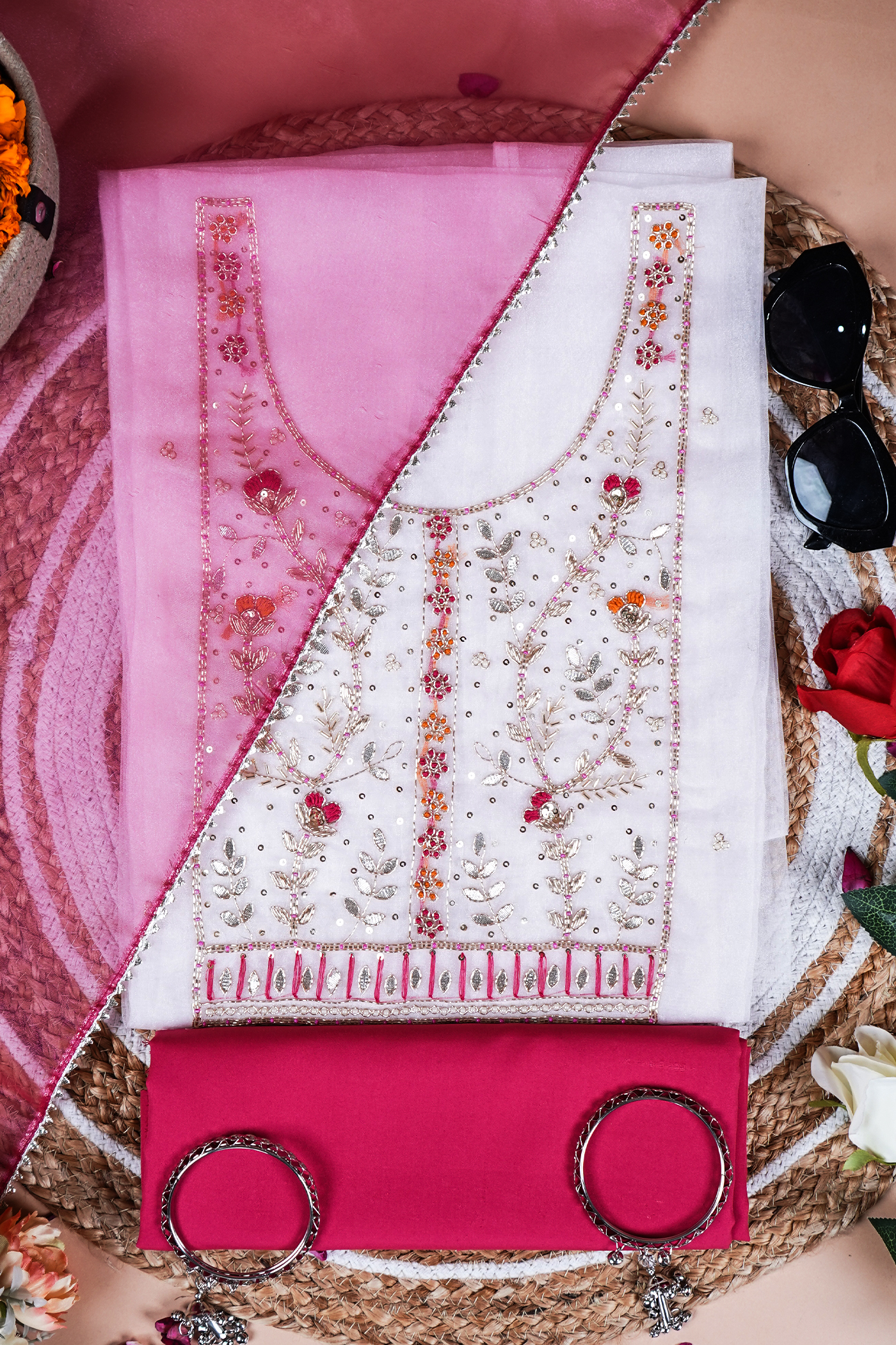 Shubhra Ivory Rose Organza Suit with Gota Zari WorkShubhra Ivory Rose Organza Suit with Gota Zari Work